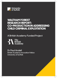 Andell, Paul (2023) Waltham Forest research report: co-production in addressing child criminal exploitation. Project Report. University of Suffolk, Ipswich, UK.