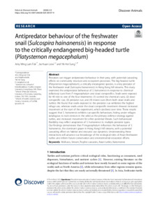 Fok, Amy Wing Lam, Liew, Jia Huan and Sung, Hei (2026) Antipredator behaviour of the freshwater snail (Sulcospira hainanensis) in response to the critically endangered big-headed turtle (Platysternon megacephalum). Discover Animals, 3 (1). ISSN 3004-894X