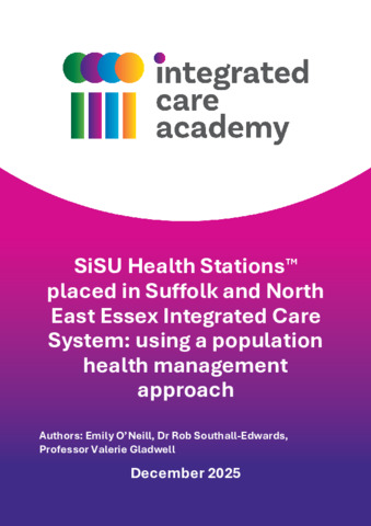 O'neill, Emily, Southall-edwards, Rob and Gladwell, Valerie (2025) SiSU health stations placed in Suffolk and North East Essex Integrated Care System: using a population health management approach. Project Report. Integrated Care Academy, Ipswich, UK.