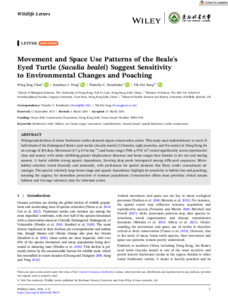 Chan, Wing Sing, Fong, Jonathan, J., Bonebrake, Timothy, C. and Sung, Hei (2026) Movement and space use patterns of the Beale's Eyed Turtle (Sacalia bealei) suggest sensitivity to environmental changes and poaching. Wildlife Letters. ISSN 2832-5869